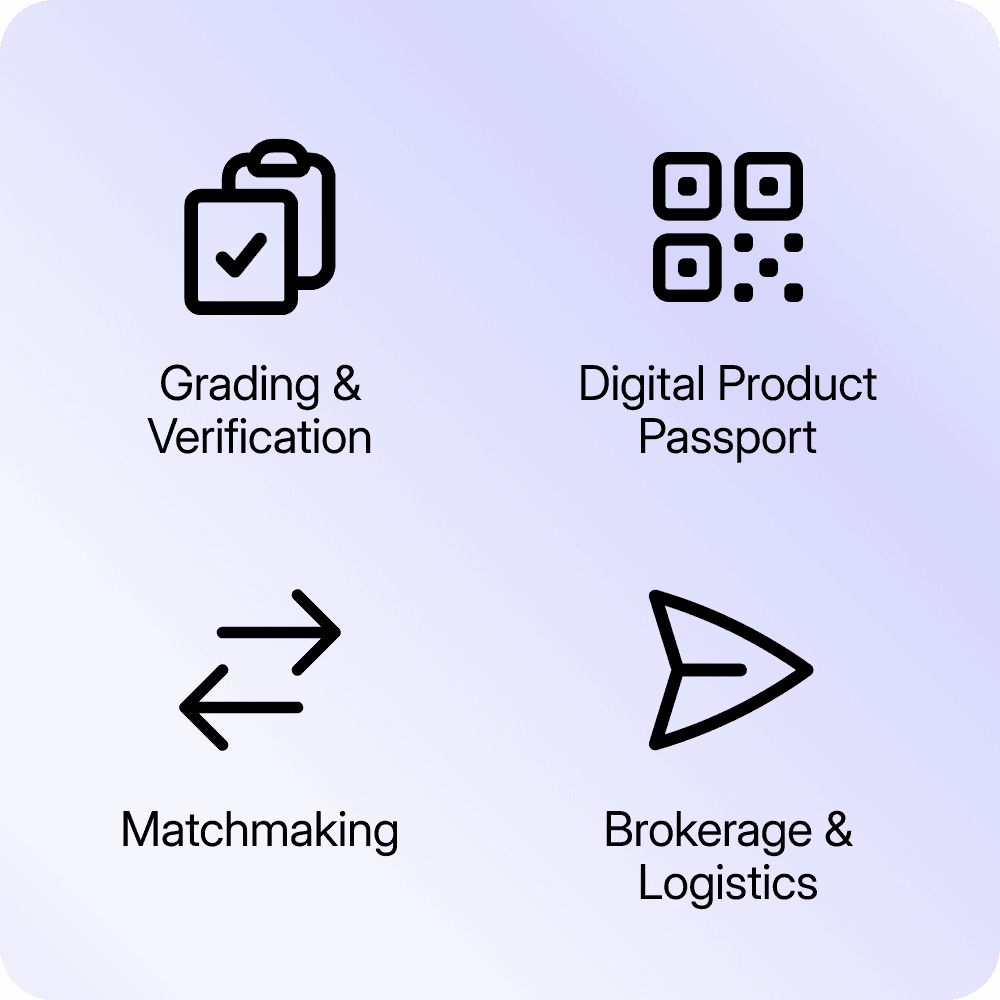 Scaling reuse requires: grading, traceability, and compliance evidence—exactly what DPP + brokerage operationalises.